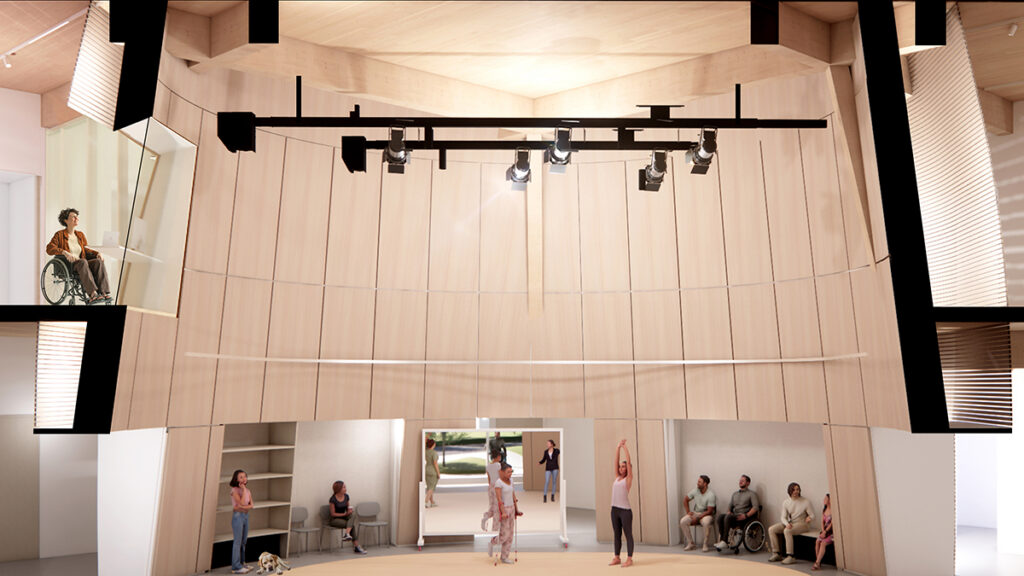 Their new pavilion, the Multidisciplinary Disability Community Arts Hub, will be a home for the performing arts that approaches disability arts as a central force in cultural life. This zero-carbon building is designed for rehearsal and incubation, with public-facing spaces that bring the neighborhood into the campus, and the campus into civic life.